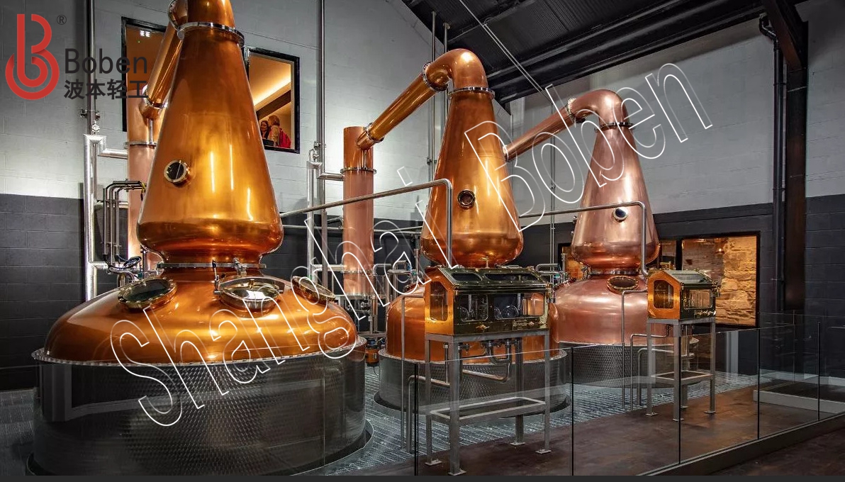 专业用于蒸馏威士忌,采用粗馏精馏组合二次蒸馏。加热方式有内置蒸汽煮沸装置和外置煮沸循环装置加热。由蒸馏釜、天鹅颈、莱恩臂、冷凝器、酒精安全箱等组成,主体部件采用全紫铜材质,容积大小可以根据客户需求定制。