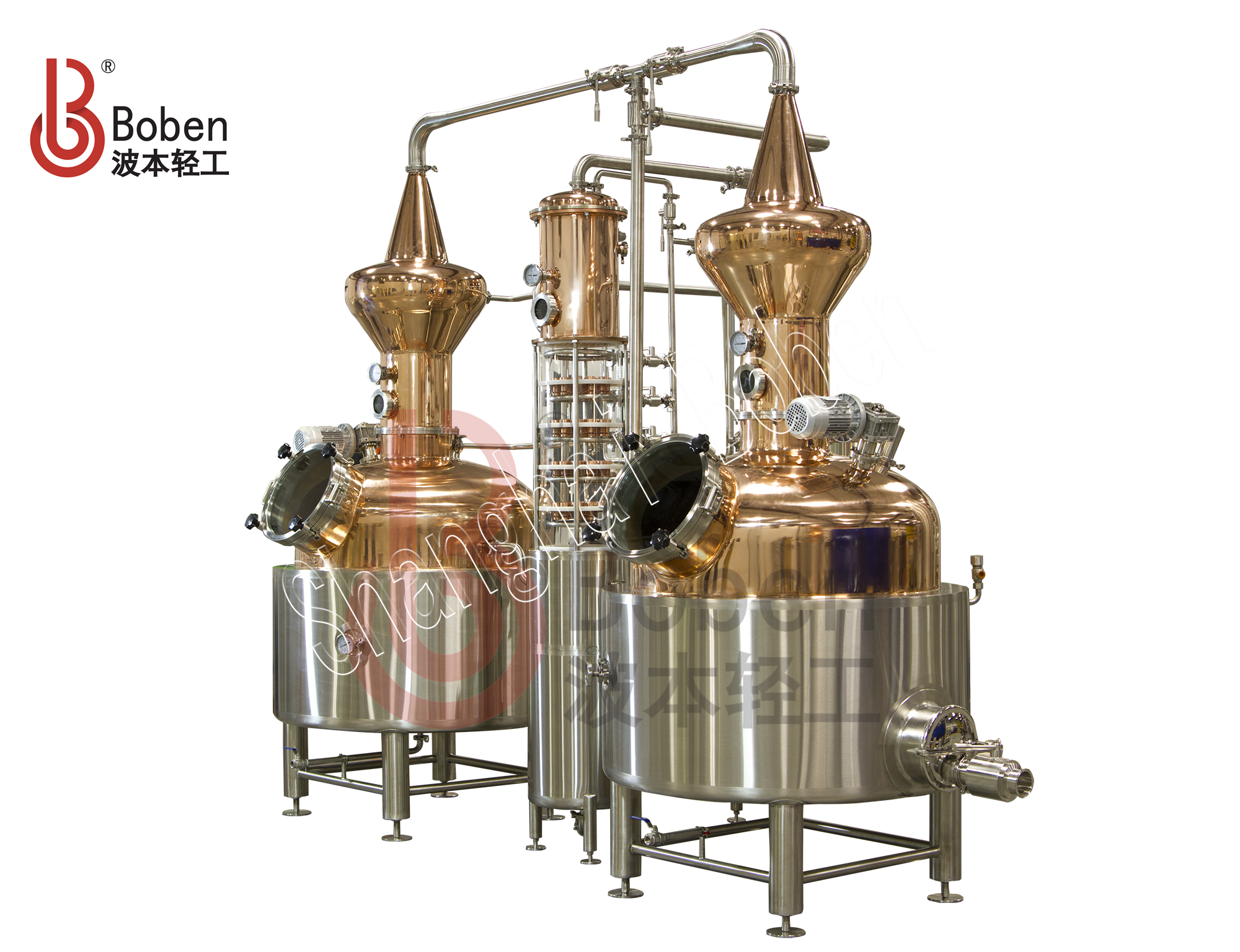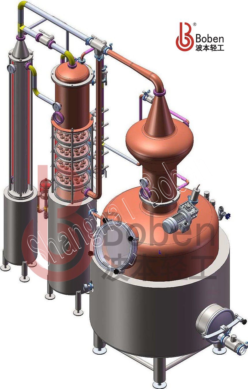 适用于威士忌、白兰地、朗姆、龙舌兰等酒类蒸馏器;热方式有夹层蒸汽加热以及夹层电加热等。由蒸馏釜、洋葱头(可定制各种形状)、玻璃式精馏塔、冷凝器等组成,主体部件采用全紫铜材质和玻璃材质,可以直观查看蒸馏过程;容积大小可以根据客户需求定制。