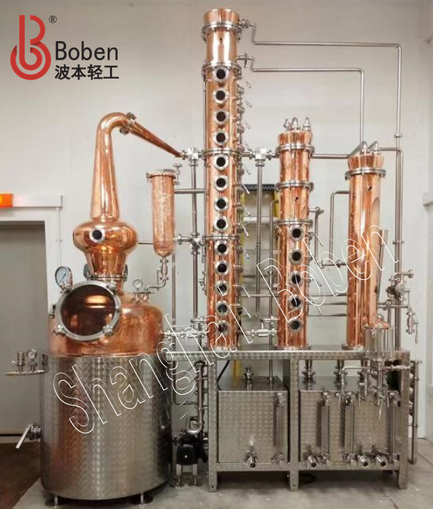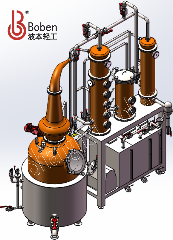 适用于威士忌、白兰地、朗姆、GIN、伏特加等酒类蒸馏器;热方式有夹层蒸汽加热以及夹层电加热等。由蒸馏釜、洋葱头(可定制各种形状)、精馏塔、GIN蓝、冷凝器、收集箱等组成,主体部件采用全紫铜材质,容积大小可以根据客户需求定制。