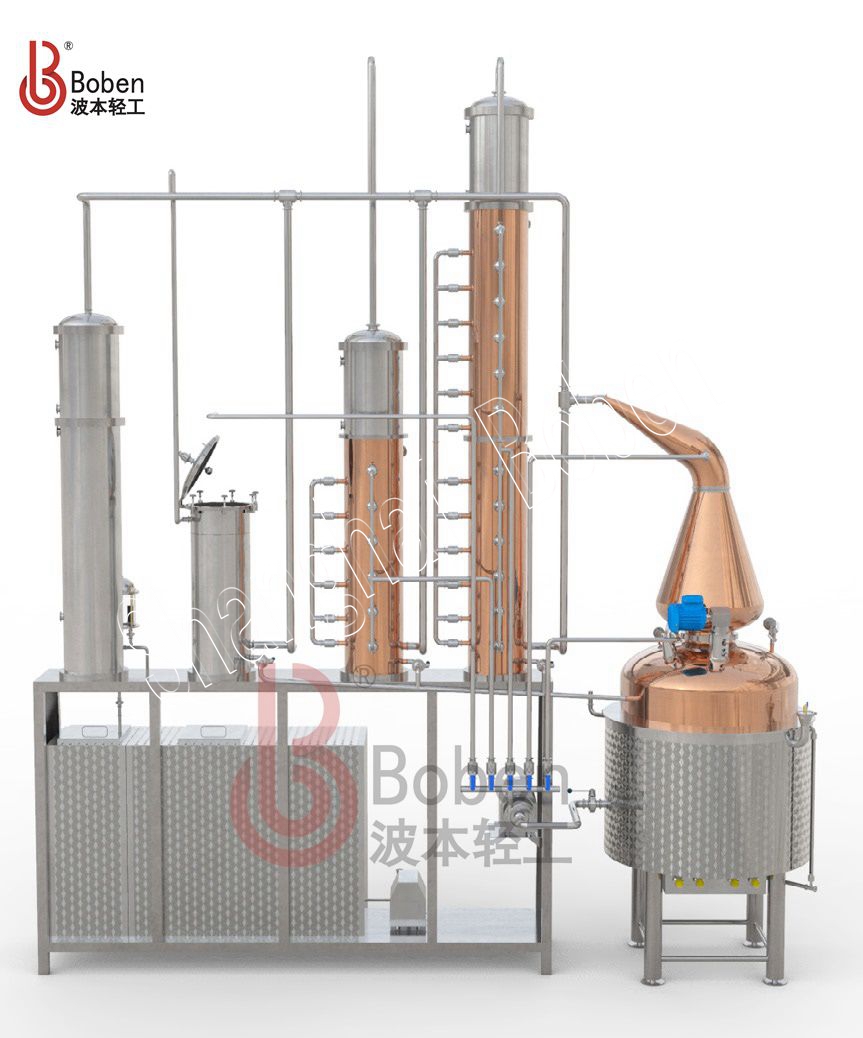 适用于威士忌、白兰地、朗姆、GIN、伏特加等酒类蒸馏器;热方式有夹层蒸汽加热以及夹层电加热等。由蒸馏釜、洋葱头(可定制各种形状)、精馏塔、GIN蓝、冷凝器、收集箱等组成,主体部件采用全紫铜材质,容积大小可以根据客户需求定制。