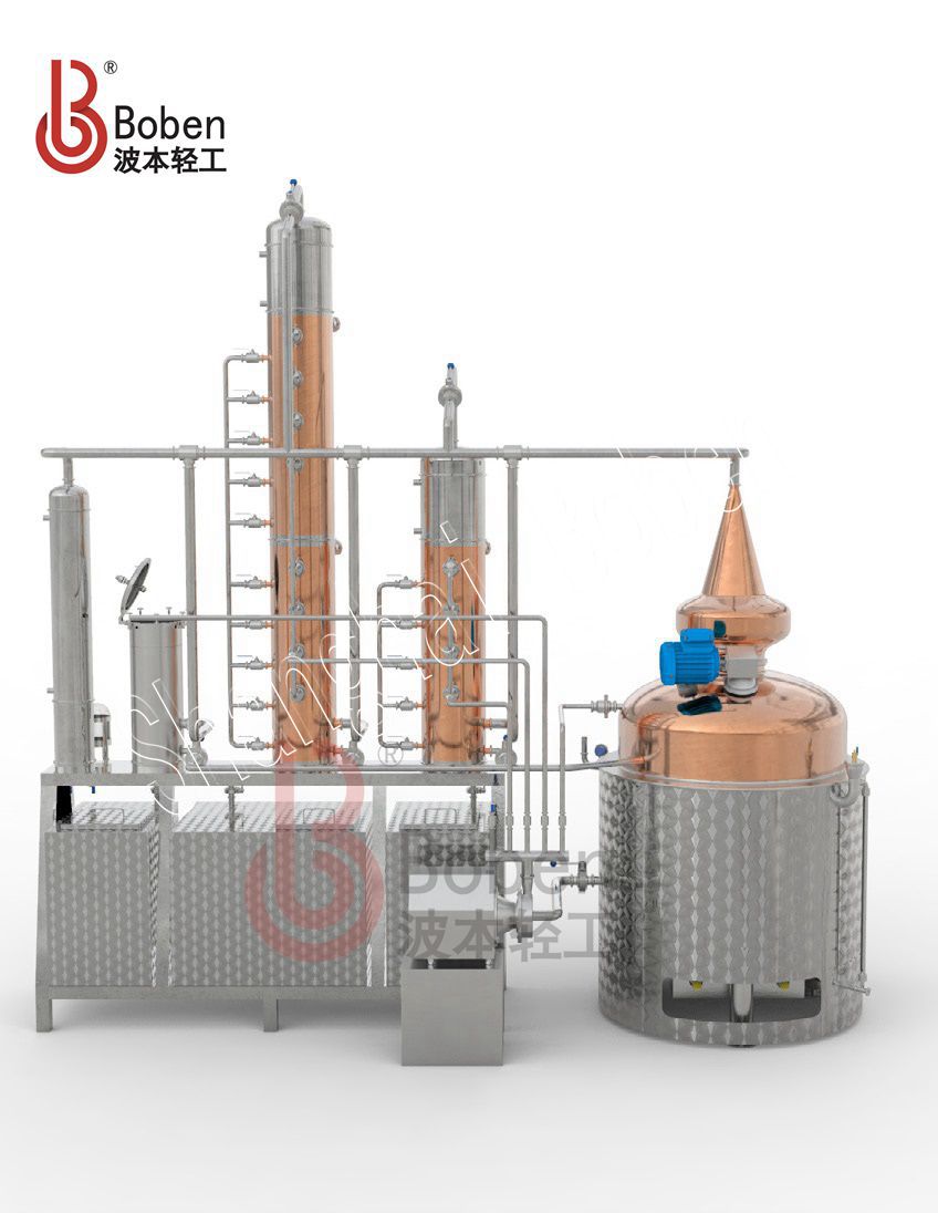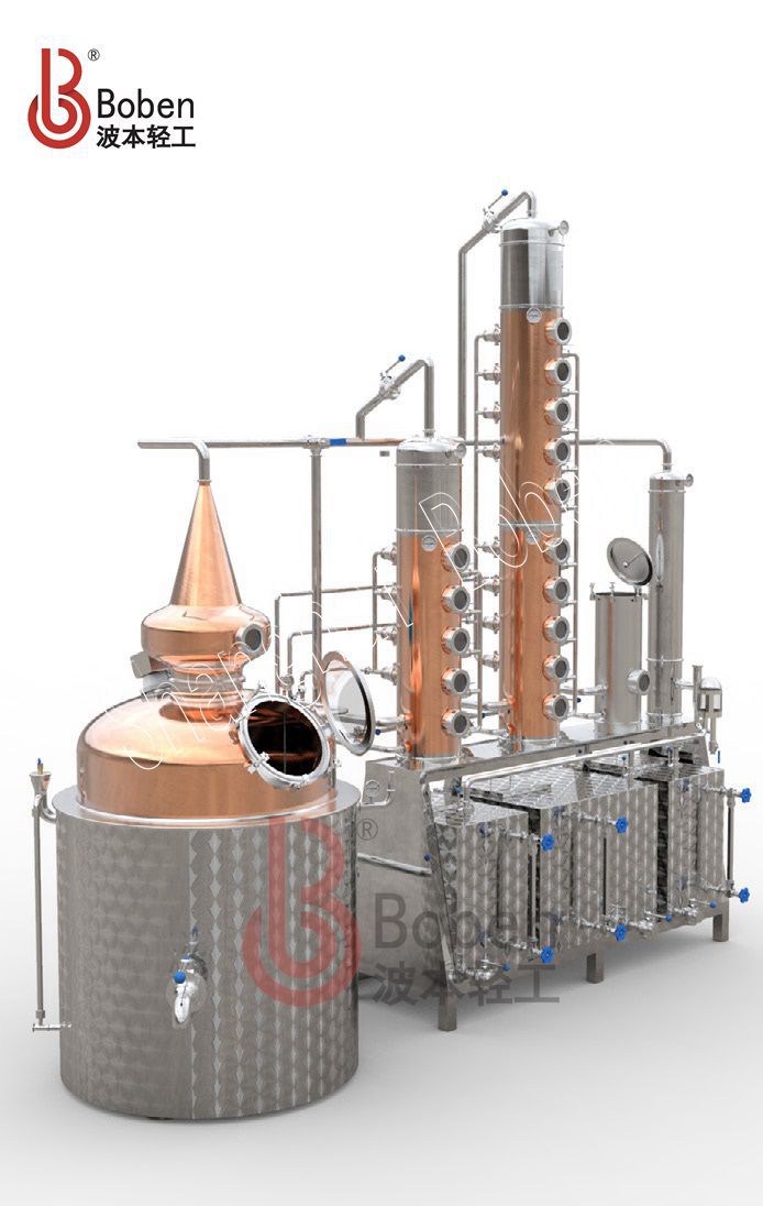 适用于威士忌、白兰地、朗姆、GIN、伏特加等酒类蒸馏器;热方式有夹层蒸汽加热以及夹层电加热等。由蒸馏釜、洋葱头(可定制各种形状)、精馏塔、GIN蓝、冷凝器、收集箱等组成,主体部件采用全紫铜材质,容积大小可以根据客户需求定制。