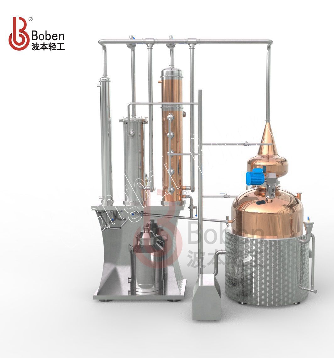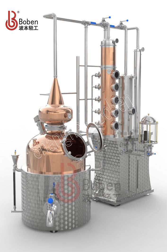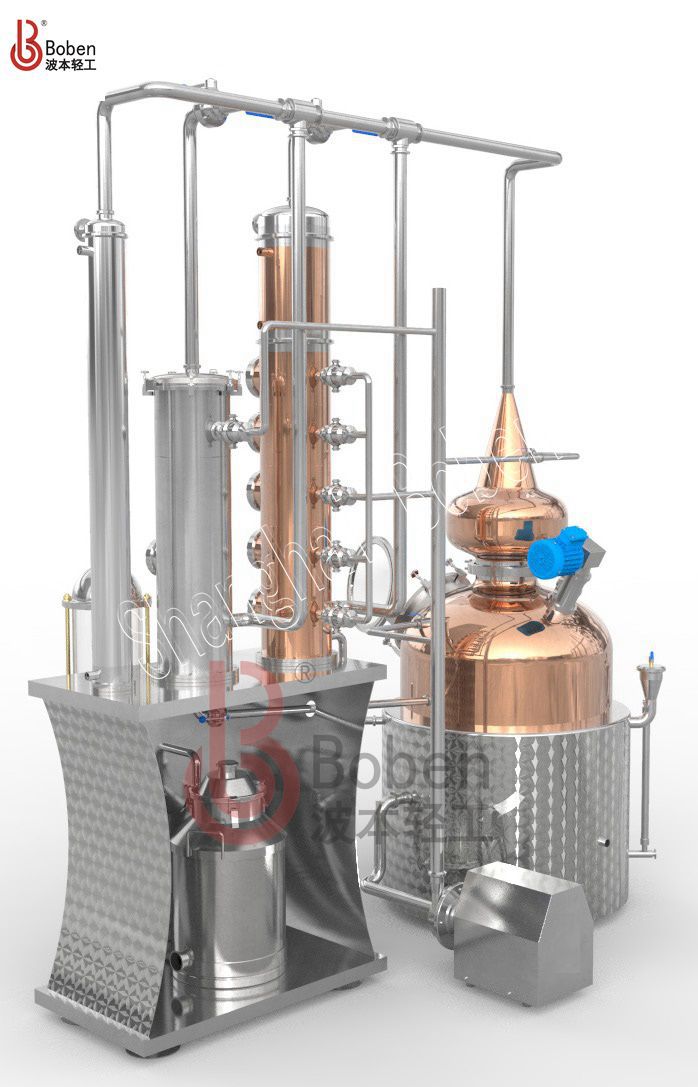 适用于威士忌、白兰地、朗姆、GIN、伏特加等酒类蒸馏器;热方式有夹层蒸汽加热以及夹层电加热等。由蒸馏釜、洋葱头(可定制各种形状)、精馏塔、GIN蓝、冷凝器、收集箱等组成,主体部件采用全紫铜材质,容积大小可以根据客户需求定制。
