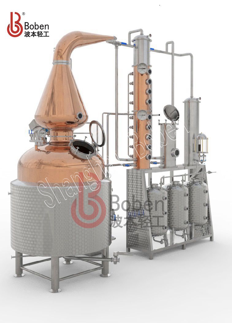 适用于威士忌、白兰地、朗姆、GIN、伏特加等酒类蒸馏器;热方式有夹层蒸汽加热以及夹层电加热等。由蒸馏釜、洋葱头(可定制各种形状)、精馏塔、GIN蓝、冷凝器、收集箱等组成,主体部件采用全紫铜材质,容积大小可以根据客户需求定制。