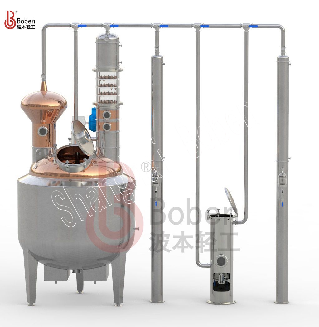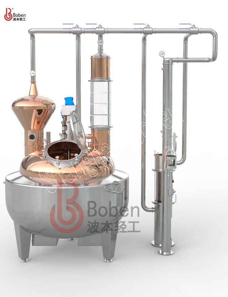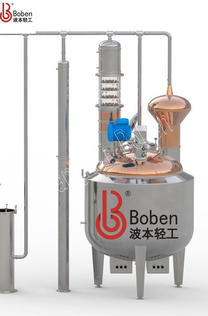 适用于威士忌、白兰地、朗姆、GIN、伏特加等酒类蒸馏器;热方式有夹层蒸汽加热以及夹层电加热等。由蒸馏釜、洋葱头(可定制各种形状)、精馏塔、GIN蓝、冷凝器、收集箱等组成,主体部件采用全紫铜材质,容积大小可以根据客户需求定制。