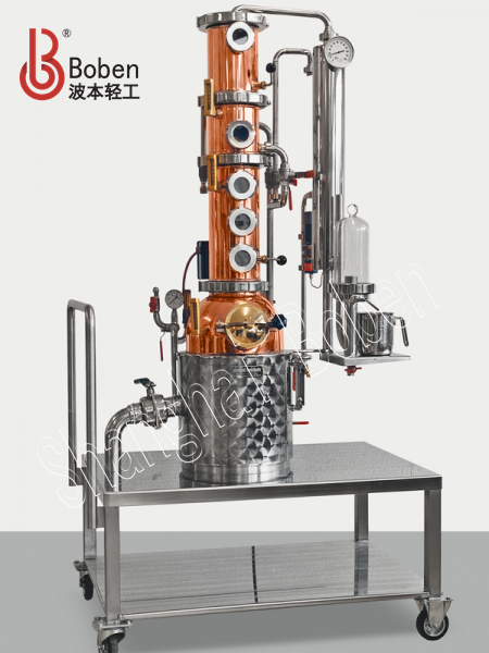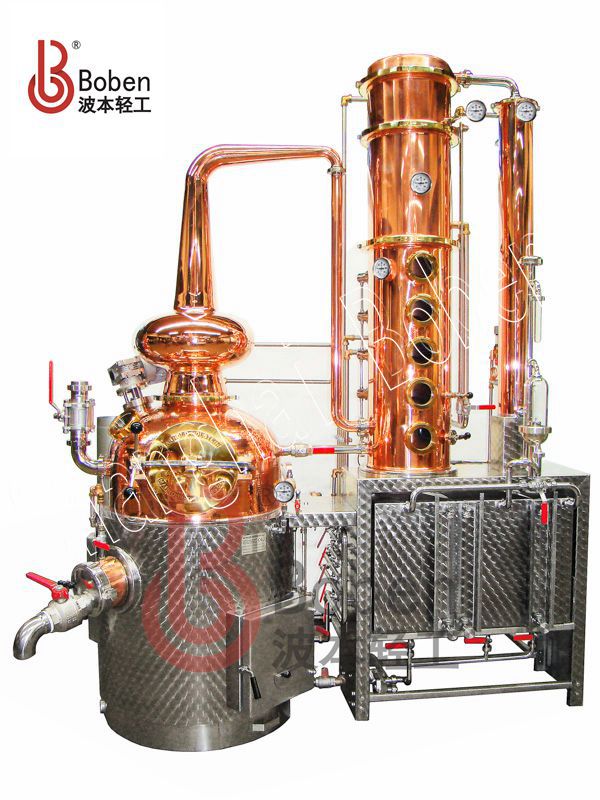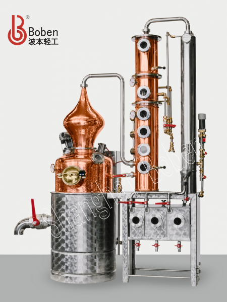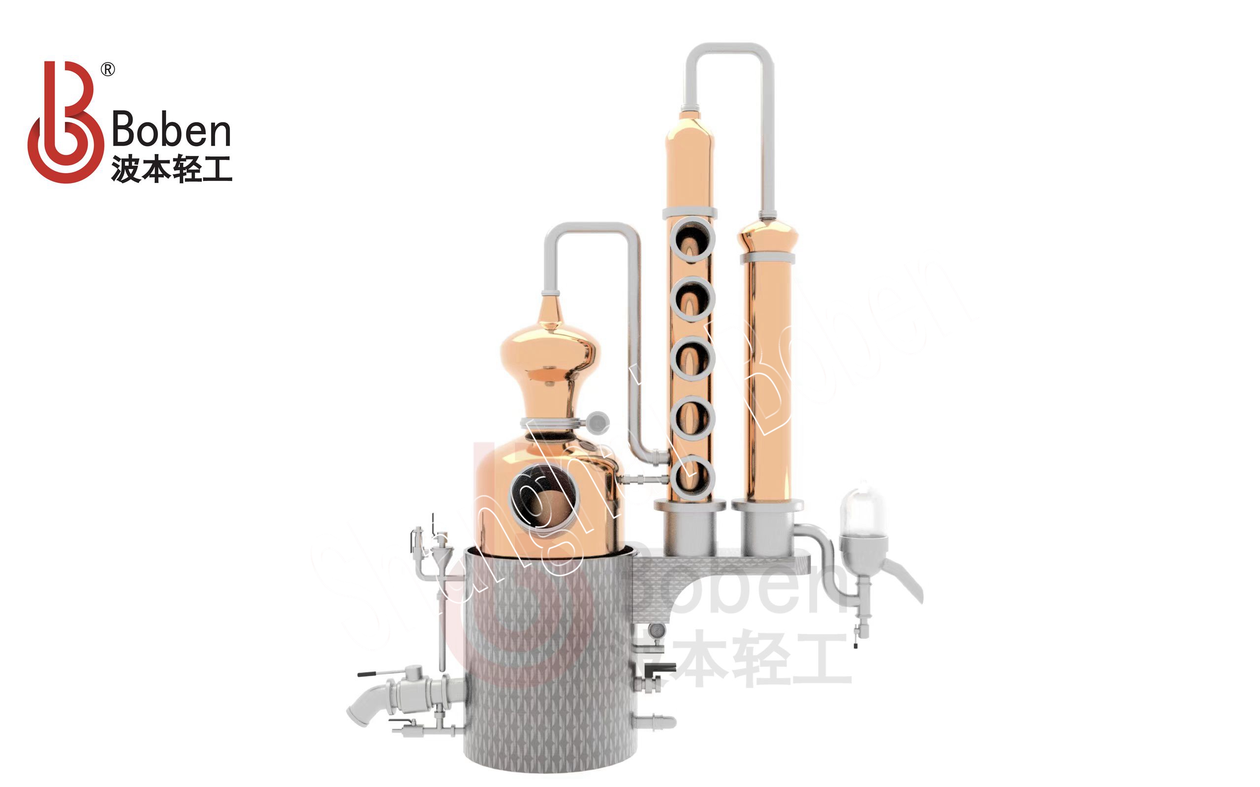 适用于威士忌、白兰地、朗姆、GIN、伏特加等酒类蒸馏器;热方式有夹层蒸汽加热以及夹层电加热等。由蒸馏釜、洋葱头(可定制各种形状)、精馏塔、GIN蓝、冷凝器、收集箱等组成,主体部件采用全紫铜材质,容积大小可以根据客户需求定制。
